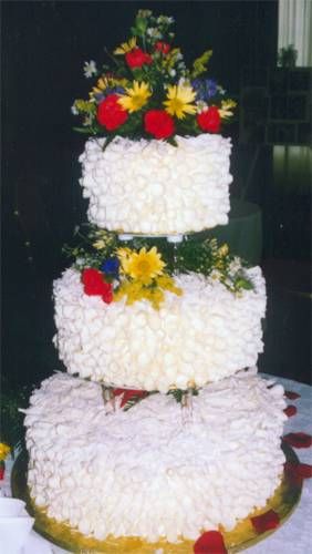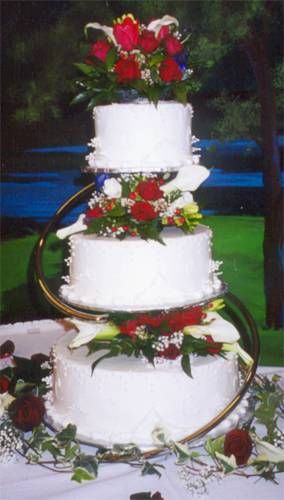 Cakes come in all shapes and sizes. If your cake vendor does not provide fresh flowers, we suggest a small floral topper with flowers and colors to complement the Bridal Party designs.